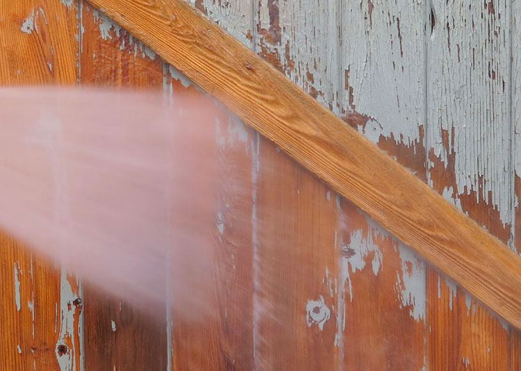 paint being stripped by high pressure washing